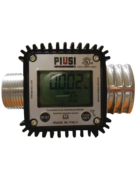 Turbina de Polipropileno Indicación de caudal Repetitividad de 0.2% 5 cifras de 0.1 a 9999 Total de cifras de 1 a 999999 Entrada de 1" NTP Perdida de carga 0.03 bar a 120 LPM Utiliza dos pilas tamaño AAA |