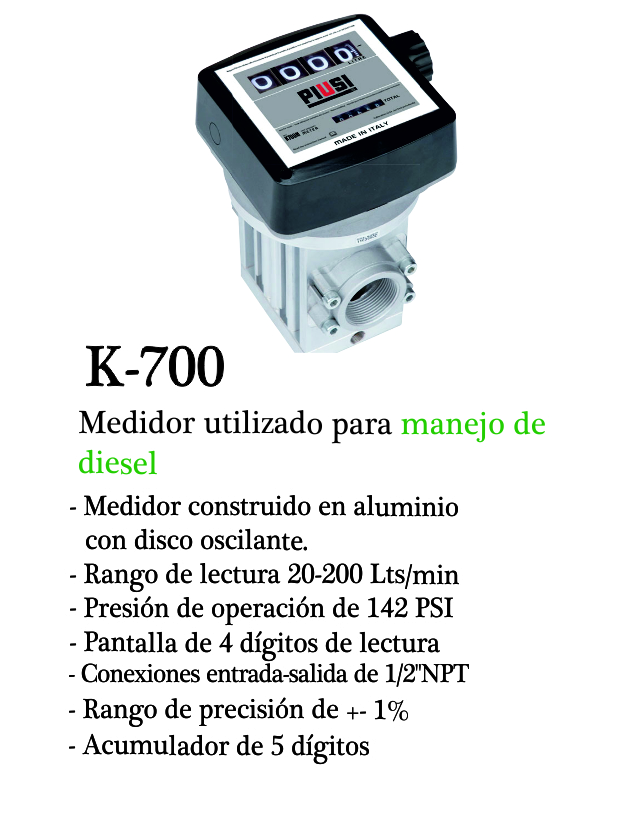 Flujo de 200 lts/min